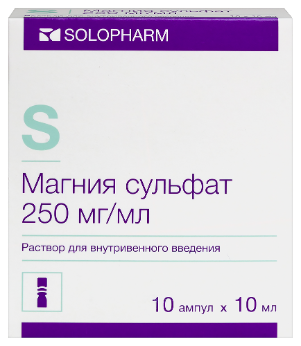 лечение дефицита магния (гипомагниемии) и его профилактика при полном парентеральном питании, приеме комбинированных оральных кон- трацептивов, тиазидных диуретиков, миорелаксантов, избыточном длитель-ном диафорезе (потливости); - лечение (купирование) аритмий (суправентрикулярные аритмии, аритмии обусловленные приемом противоаритмических препаратов, глюко-кортикостероидов, диуретических средств, аритмии torsade de pointes, арит-мии при дигиталисной интоксикации); - профилактика аритмий при инфаркте миокарда; - купирование гипертонического криза (в том числе с явлениями отека мозга); - купирование судорожного синдрома у детей (в том числе при остром гломерулонефрите); - невынашивание беременности, поздние токсикозы беременности (гес-тозы); - преэклампсия и эклампсия; - отравление солями тяжелых металлов, мышьяком, тетраэтилсвинцом, растворимыми солями бария (антидот