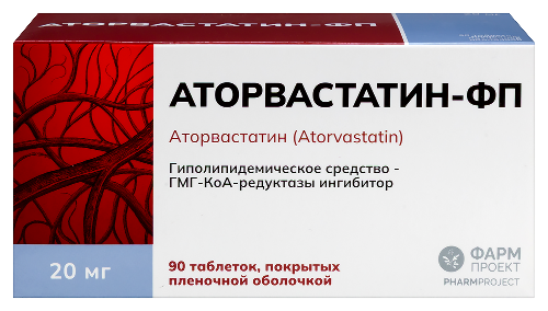 Аторвастатин-фп 20 мг 90 шт. таблетки, покрытые пленочной оболочкойФармпроект АО