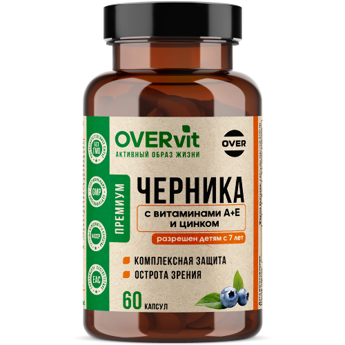 Overvit черника+витамин а+витамин е+цинк 60 шт. капсулы массой 500 мгOVERVIT