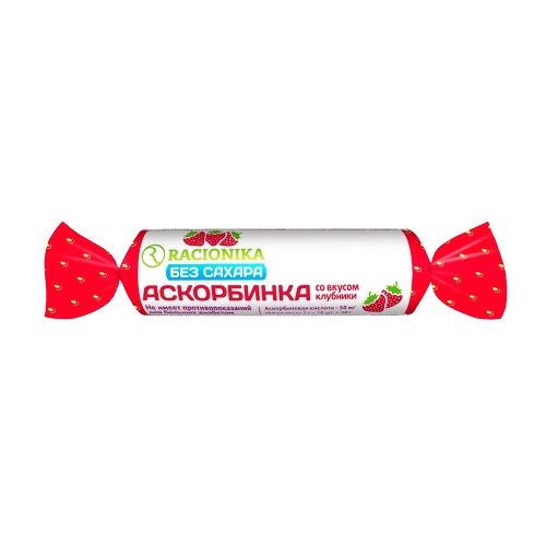 Racionika аскорбинка без сахара при диабете со вкусом клубники 10 шт. таблетки жевательные массой 3 гр