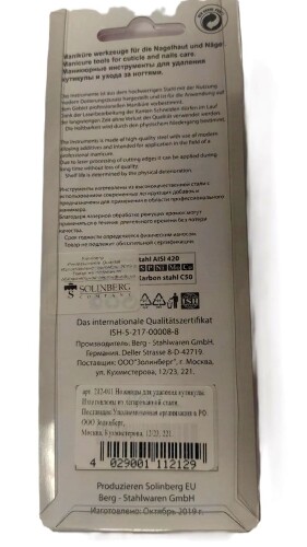 Ножницы Solinberg отличаются длительным сроком службы, не ржавея при дезинфекции. Они незаменимые инструменты для ухода за ногтями на руках и ногах.