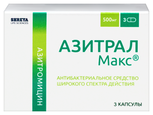 Азитрал Макс 500 мг 3 шт. капсулыШрея Лайф Саенсиз Пвт Лтд